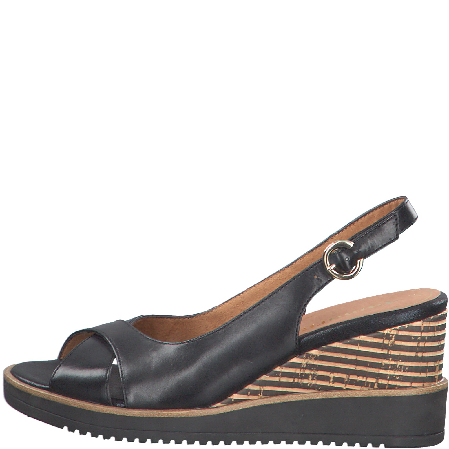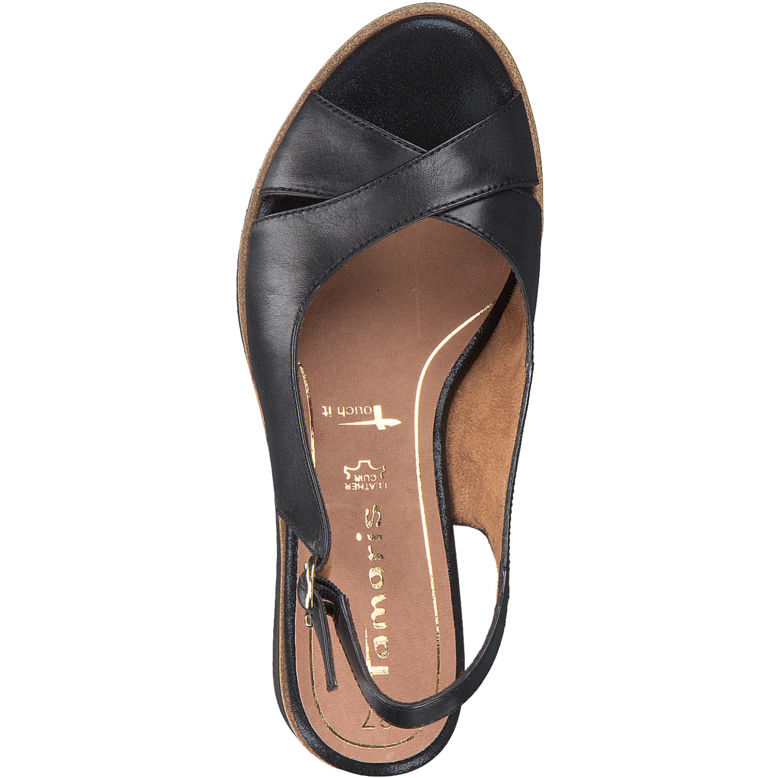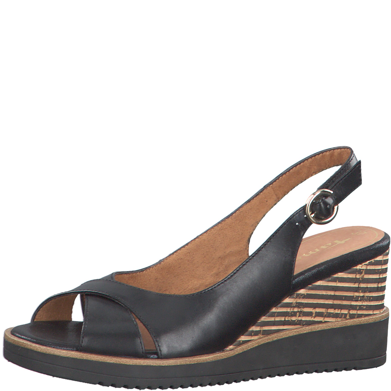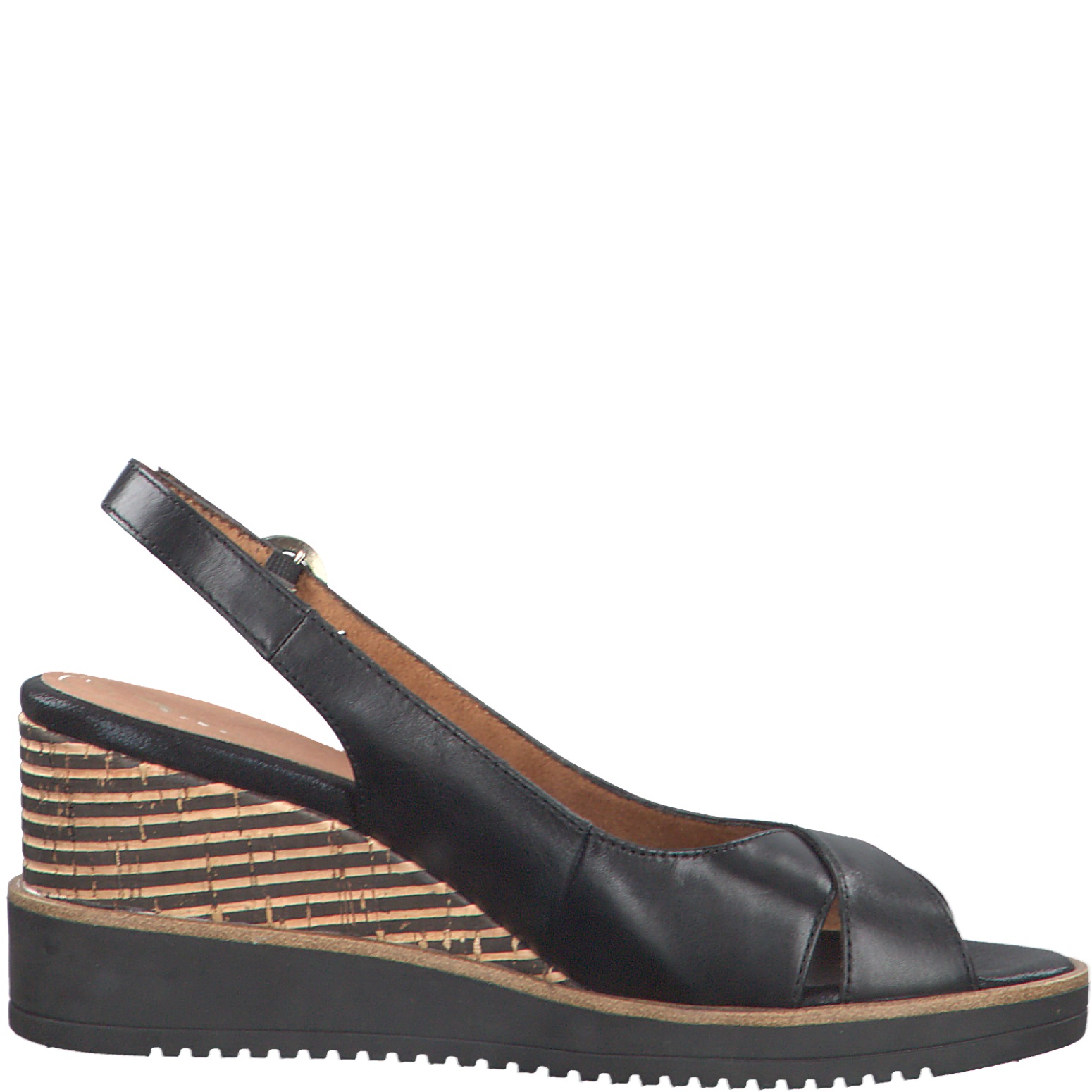 Женские босоножки Tamaris черного цвета на танкетке. Выполнены из натуральной кожи. Танкетка декорирована полоской. Мягкая кожаная стелька Touch It адаптируется к индивидуальной форме стопы и обеспечивает оптимальный комфорт. Босоножки на танкетке – отличная замена каблукам. Обувь бренда Tamaris – это высокое качество и изящество, инновации и современные технологии. Tamaris – это индивидуальный стиль, который удовлетворит любые капризы истинных ценителей качественной обуви.