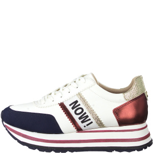 Стильные кроссовки новой женской коллекция Tamaris дополняют ваш образ непредсказуемым сочетанием красного, белого, синего и золотого цветов. Благодаря современному материалу эко - коже эта обувь открывает возможность носить ее не только в период весна-лето, но и осень. А текстильный подклад придаст мягкости .
